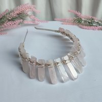 Natural rose quartz varies in colour intensity and clarity with some appearing pale or clear. Each crown is handmade to be unique just for you.