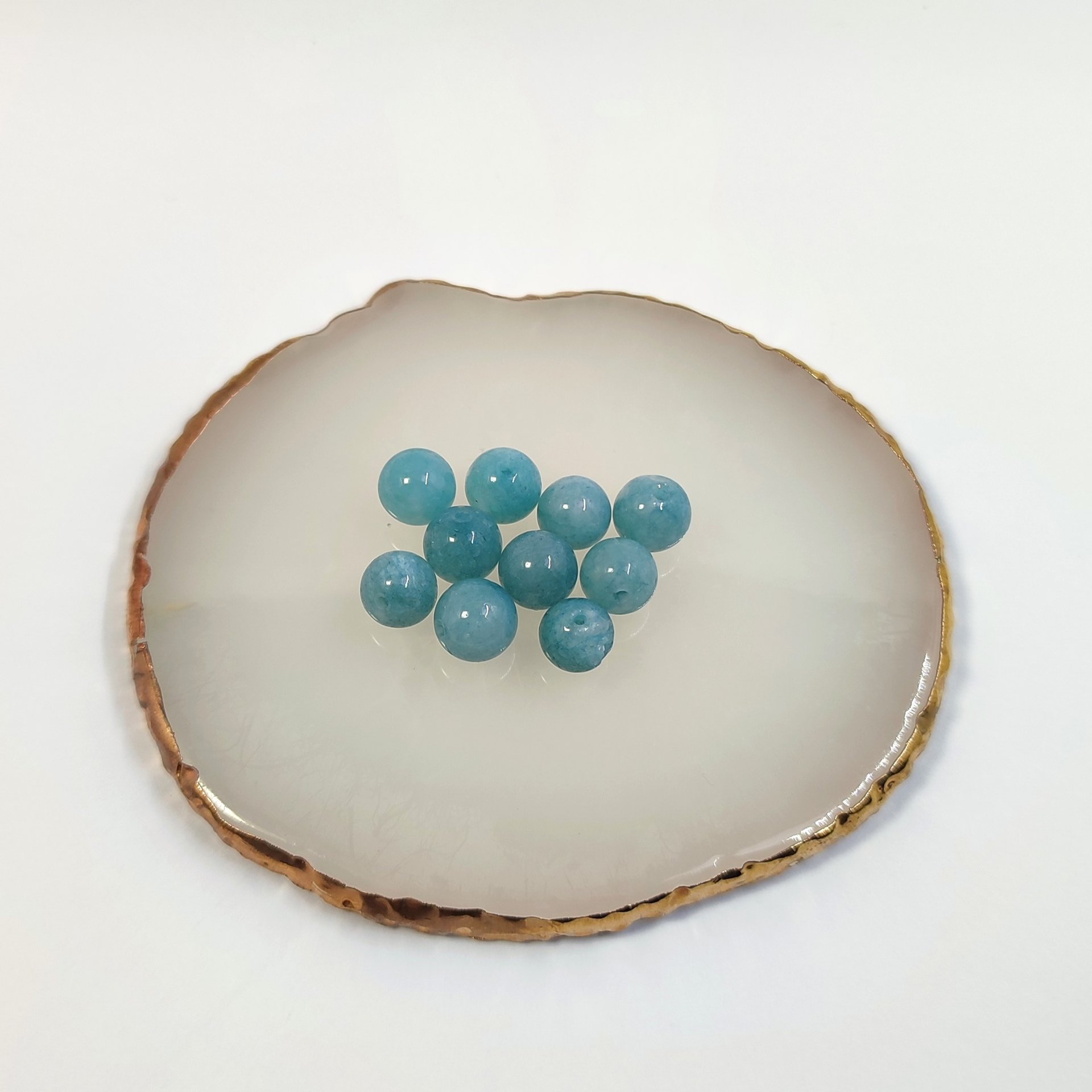 Natural aquamarine beads measuring approximately 8mm. You will receive a pack of 10 beads.