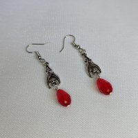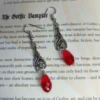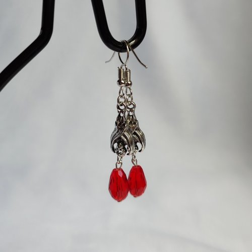 ☽ Pair of bat earrings with faceted beads in vampy red or gothic black. Bats are zinc alloy and fish hooks are made from hypoallergenic stainless steel, which is kinder to skin than plated metals. Presented in an organza bag with rubber earring backs ☾