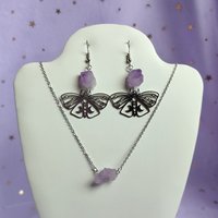 ☽ Pair of earrings with stainless steel butterflies and raw amethyst clusters. Butterflies feature cut-out moons, adding a touch of magic to this fun boho accessory. Fish hooks are made from hypoallergenic stainless steel which is kinder to skin than plated metals. Presented in an organza bag with rubber earring backs ☾