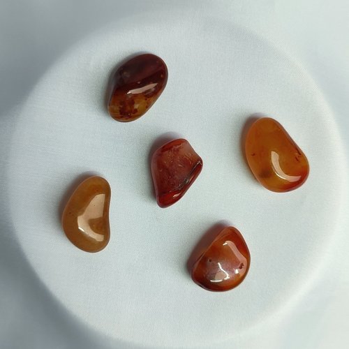 Carnelian relates to the Latin word for "flesh" and was symbolic throughout the ages as life blood, boosting vitality and preventing illness or disease. Warriors wore it into battle for protection and power, while more traditionally it has been used to attract love, passion and desire. Whatever the intention, carnelian is a stone of motivation and confidence building. It dispels mental lethargy, helping to sharpen concentration and avoid procrastination. It awakens talents and creativity and is thought to clarify the voice, making it popular amongst singers and performers. Its connection to the sacral chakra will bring out the inner child, playfulness and spontaneity. Meditate with carnelian to restore closeness and intimacy in relationships or overcome sexual anxieties. It can help to let go of emotional baggage and heal old wounds, as well as protecting against anger, jealousy and possessiveness. Physically, carnelian is thought to boost fertility and aid PMS/menopausal symptoms, as well as problems with the lower back and arthritis.