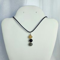 ☽ Gemstone pendant for protection against evil entities and negativity with three beads wrapped in silver plated wire. Beads include citrine, onyx, labradorite and measure approximately 7mm-8mm each. Comes with an 18 inch stainless steel chain or waxed cotton cord and presented in an organza bag with information card ☾
