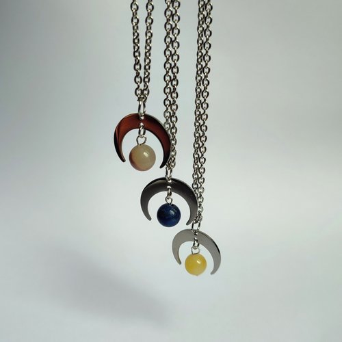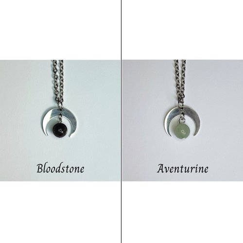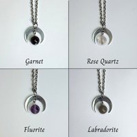 ☽ Silver moon pendant with a choice of gemstone beads. Comes with an 18 inch stainless steel chain or waxed cotton cord and presented in an organza bag. Pendants are stainless steel and measure 17mm x 20mm ☾