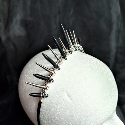 ☽ The Punk Rock Crown features black howlite and silver spikes wire wrapped onto a headband. A fun, lightweight accessory for goths, punks, metalheads, rock chicks and anyone wanting to add an alternative edge to their style ☾