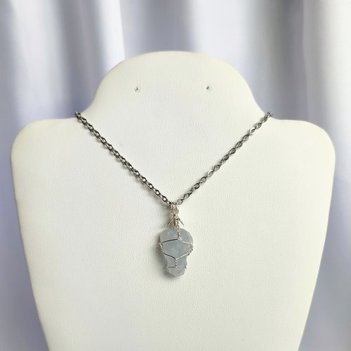☽ Raw celestite wrapped in silver plated wire. Comes with an 18" stainless steel chain or waxed cotton cord and velvet pouch ☾