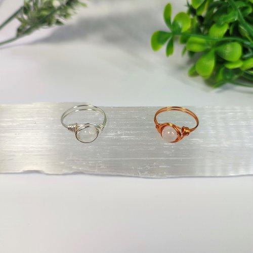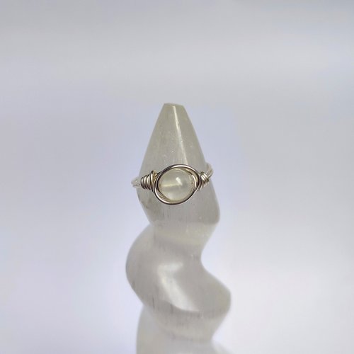 ☽ Wire wrapped ring with 6mm selenite bead. Available in silver plated or copper, ring sizes A-Z (UK). Presented in an organza bag ☾