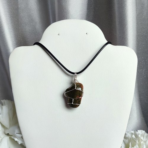 ☽ Unakite polished tumblestone wrapped in silver plated wire. Comes with an 18" stainless steel chain or waxed cotton cord and velvet pouch ☾