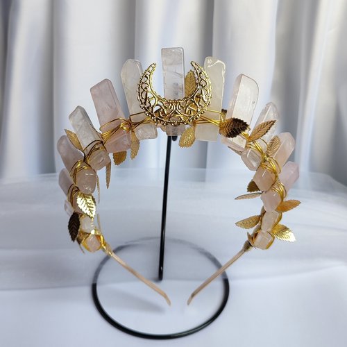Natural rose quartz varies in colour intensity and clarity with some appearing pale or clear. Each crown is handmade to be unique just for you.