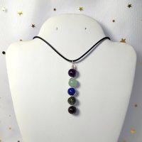 ☽ A necklace for the sign of Virgo with five gemstone beads wrapped in silver plated wire. Beads include amethyst, aventurine, lapis lazuli, fluorite, garnet and measure approximately 7mm-8mm each. Comes with an 18 inch stainless steel chain or waxed cotton cord ☾